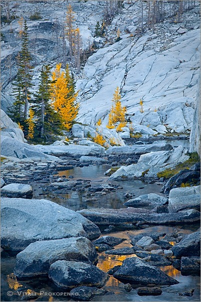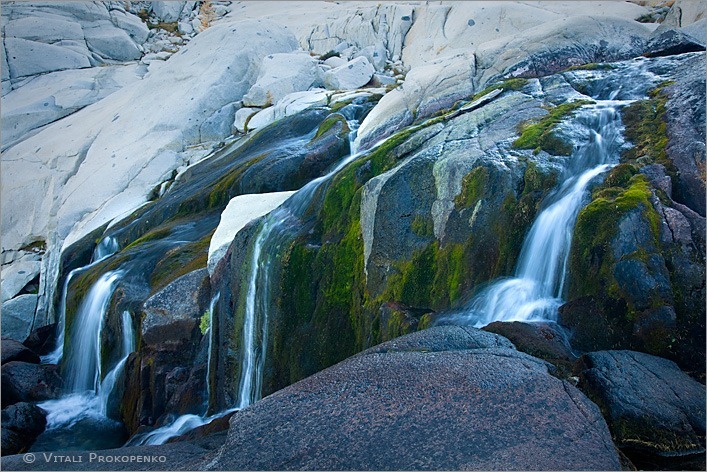 It was still great that we got there so early. The early morning sun was lighting up granite wall across the waterfall reflecting back soft warm light while waterfall itself stayed in shadow with water reflecting deep blue of the sky. Keekwulee Falls was a great destination for photography: it has so many intricate streams, cascading water, emerald pools, that provide endless opportunities for images.