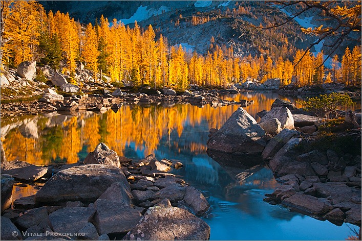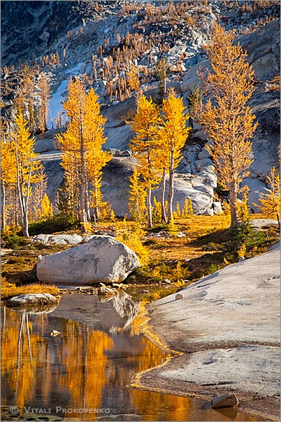 We spent one and a half hours by Keekwulee Falls. I could easily spend there even more making more images. Once we left this waterfall we went on climbing even steeper higher to a pass. Doing this early morning with air still cool after night definitely made it easier. At some point we passed one more waterfall but it had no close approach. We could barely see it thru trees. Once over the pass we quickly got to the first alpine lake on our hike: Melakwa Lake with Upper Melakwa Lake just a short distance away. At this point the sun was high. The light was flat – the kind of landscape photographers don’t like. I was not discouraged by that since the main goal was exploration. Still I made it a goal to take at least one interesting photo on each lake. So here the go in the order of appearance.