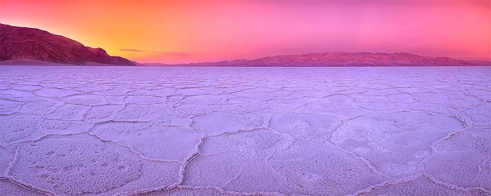 My first sunrise on this trip was at Badwater. That’s a large flat with lots of salt deposits from drying out water. The salt is brought by streams running down the mountains surrounding the valley in those rare cases there is a rain in Death Valley.