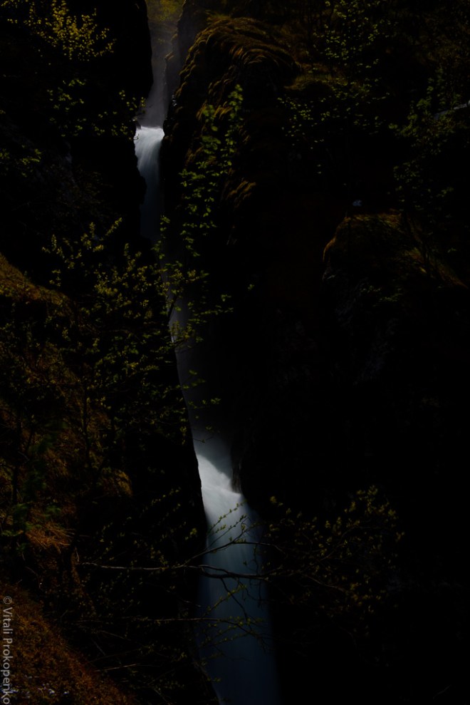 I put my backpack on, grab my tripod and cautiously head off into the woods. Every twist and turn of the creek bed reveals new details. At first it starts as a rocky opening wide enough that two sides of the trees cannot join their branches to block the sky. The water is nowhere to be seen but I can hear its restless murmur. It is hiding under the rocks.